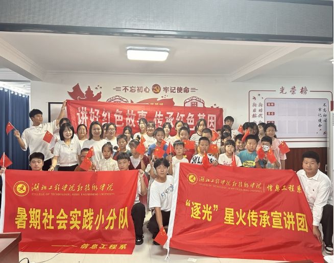 信息工程系团总支通过成立“逐光”星火传承宣讲团,分别赴孝感市图书馆、卧龙乡卫东村开展红色教育宣讲暨慰问留守儿童实践活动。宣讲团以“讲好红色故事,传承红色基因”为主题,让红色经典在新时代青少年中得到广泛传播和深刻理解,为实现中华民族伟大复兴的中国梦汇聚磅礴力量。在看望慰问卧龙乡卫东村留守儿童期间,宣讲团通过情景式演绎的形式,为儿童们带来一堂生动真实的教育实践课程。