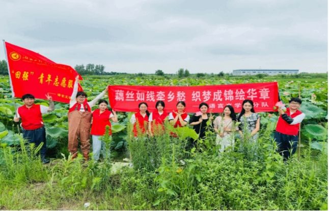 语言文学系团总支开展以“藕丝如线牵乡愁,织梦成锦绘华章”为主题的“三下乡”暑期社会实践活动。师生们分别前往湖北荷莲香食品有限公司下农田体验劳作,了解莲花在我国传统文化中的重要地位,以及莲花在观赏、药用、食用等方面的多重价值。下午,小分队赴汉川市纺织企业---湖北凯迪纺织有限公司,实地考察纺织工艺,学习纺织技术,感受传统产业的现代化转型,让员工们深刻认识到科技的重要性,推动乡村振兴与科技创新融合发展。