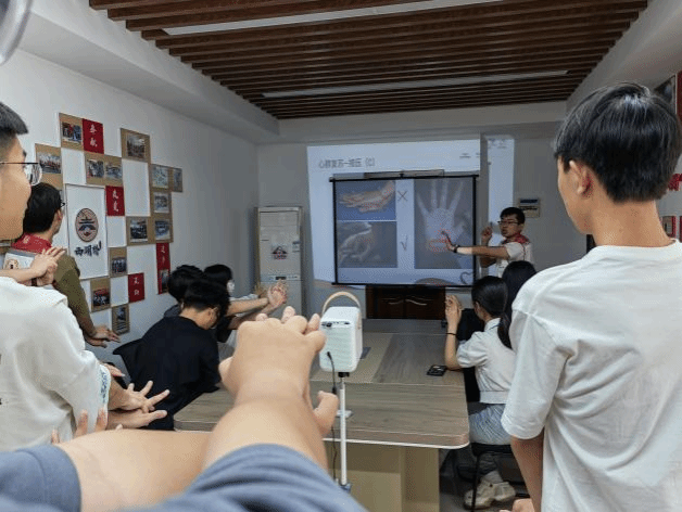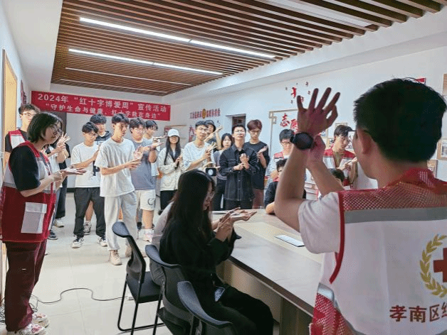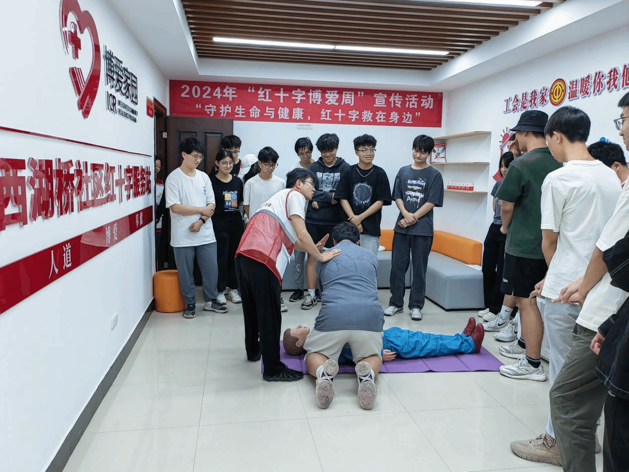 活动开始前,志愿者及员工代表们在西湖桥社区工作人员的引导下了解了红十字会的发展历程和主要内容。随后,在书院社区卫生服务中心邓鹏医生的指导下,学习了心脏骤停的原因和急救措施:首先要判断患者的动脉跳动和呼吸情况,若确认为心脏骤停,则进行胸外按压和人工呼吸(按比例30:2)。志愿者们认真聆听医护人员的讲解,随后在实践中不断完善动作,提高急救能力。
