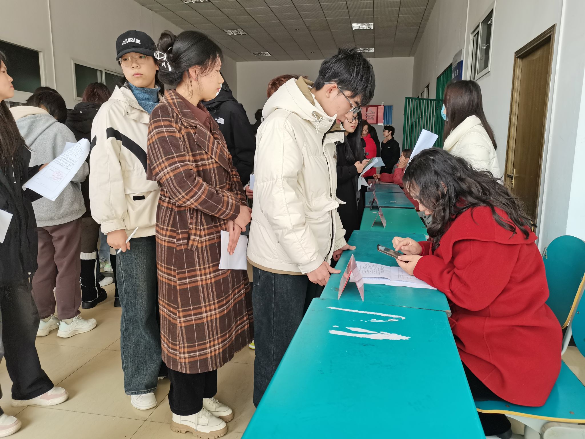招聘会上,同学们手持申请表在自己心仪的岗位前排队等候面试,各招聘单位老师秉持着公平公正原则,依据岗位要求对员工进行现场面试。同学们提前了解了岗位的工作要求,认真准备了自我介绍,态度诚恳地回答面试老师的提问。面试通过的员工,将签订合同录用。