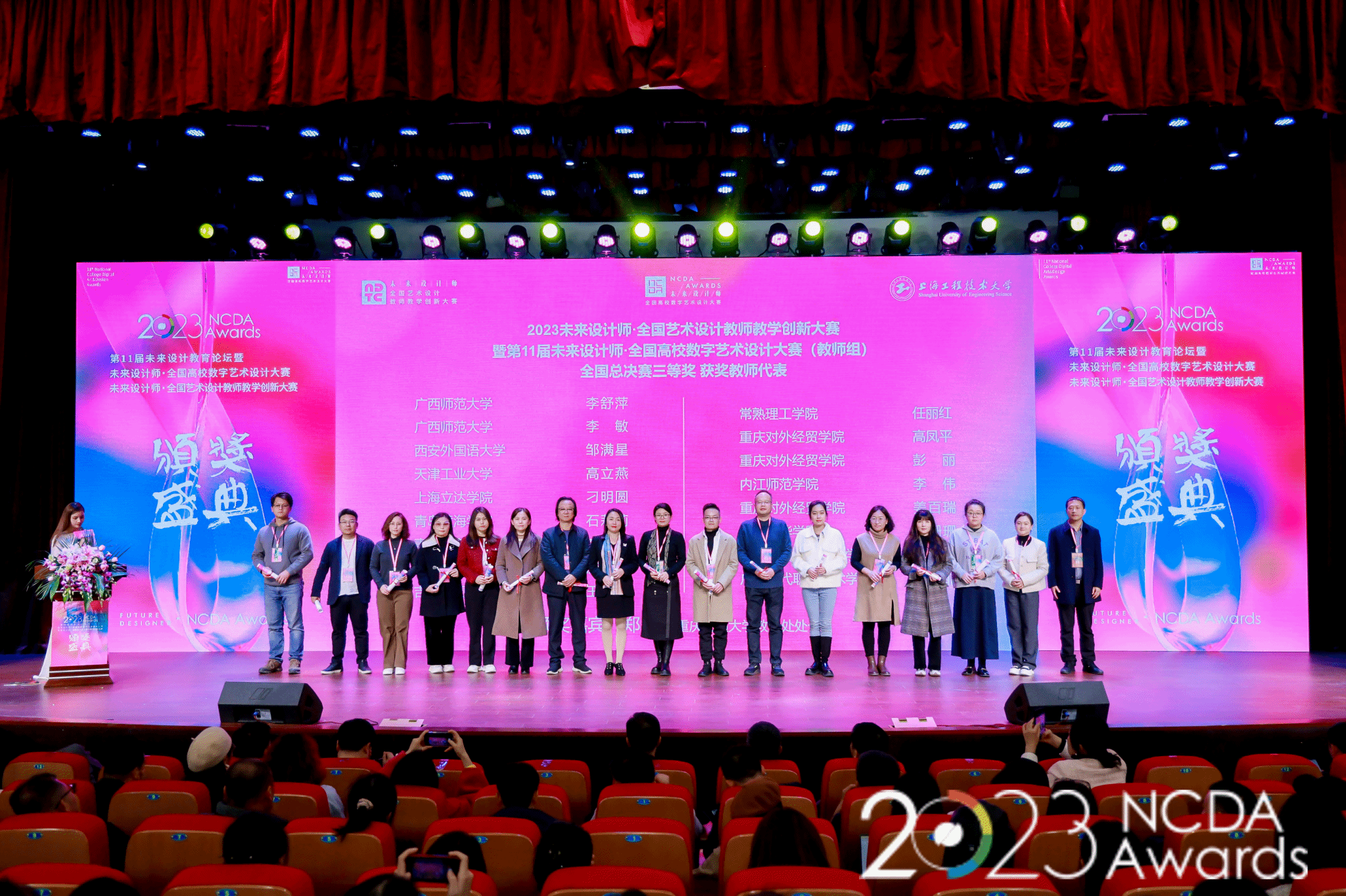 除教师教学创新赛道外,同期进行的还有2023“未来设计师•全国高校数字艺术设计大赛(NCDA)”设计作品赛道获奖员工及优秀指导教师奖的颁授。语言文学系在2023“未来设计师•全国高校数字艺术设计大赛(NCDA)”省赛荣获等级奖15项(其中一等奖5项、二等奖6项、三等奖4项)的基础上,在此次决赛中获得国赛一二三等奖3个奖项及大赛组委会颁发的“优秀指导教师奖”。