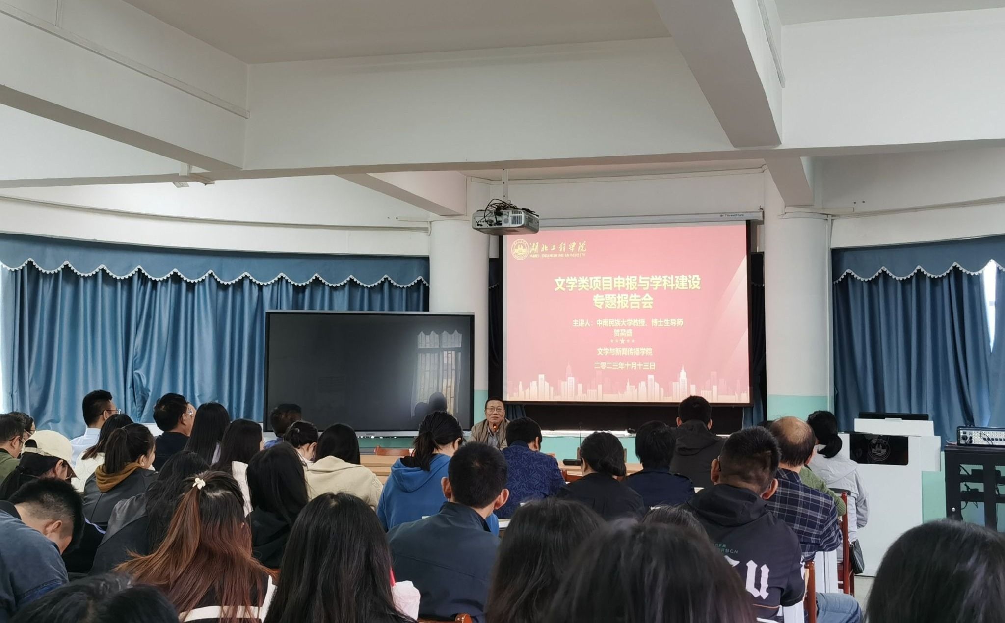 接着,贺昌盛教授详细地讲解了文学类课题申报的注意事项,包括如何选题、课题的类型、课题申报书的写作方法以及如何开展课题研究等。他表示,青年教师要多发表有见地的文章,即使是普刊也能为以后更深入的学术研究奠定基础。