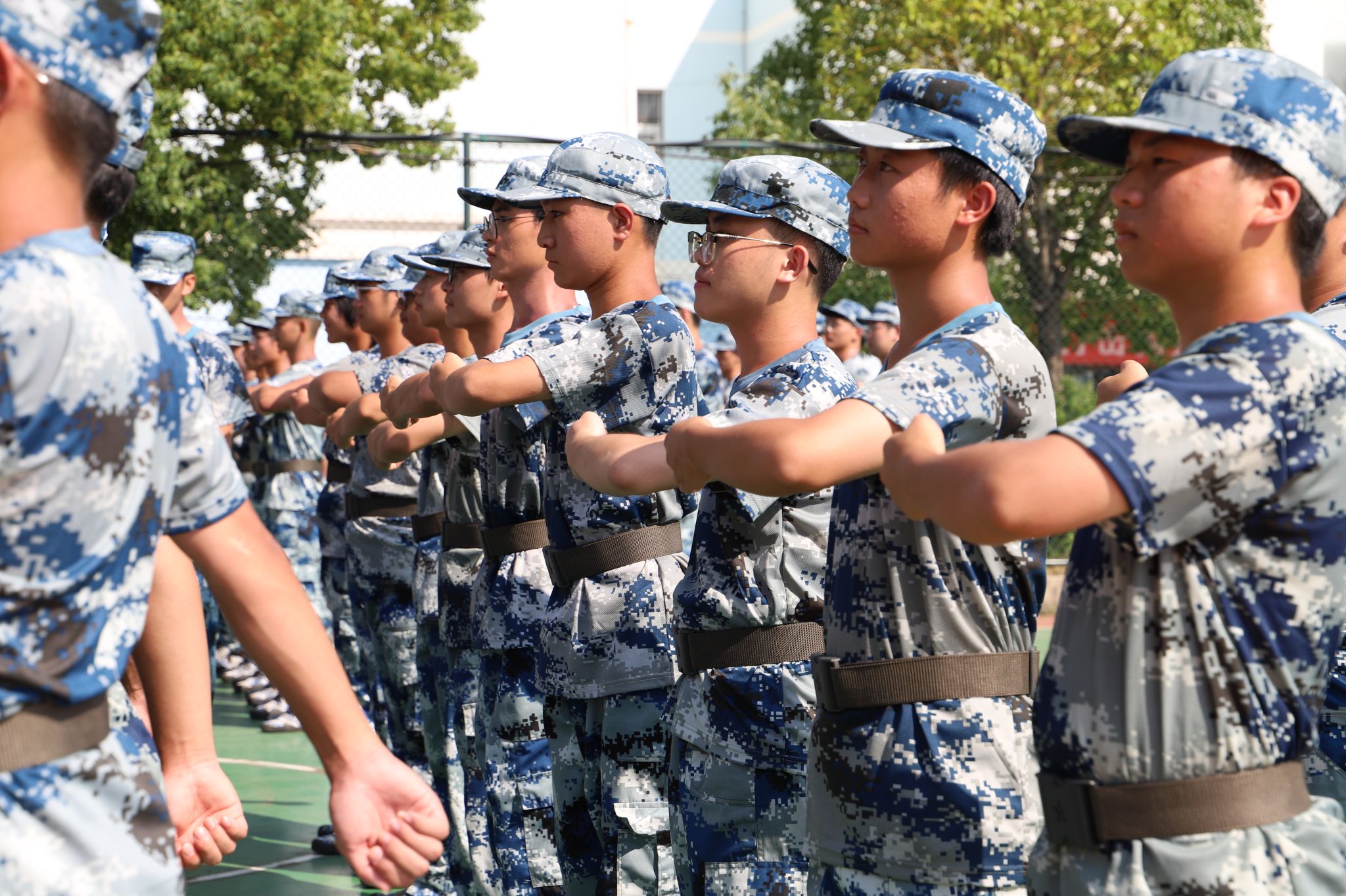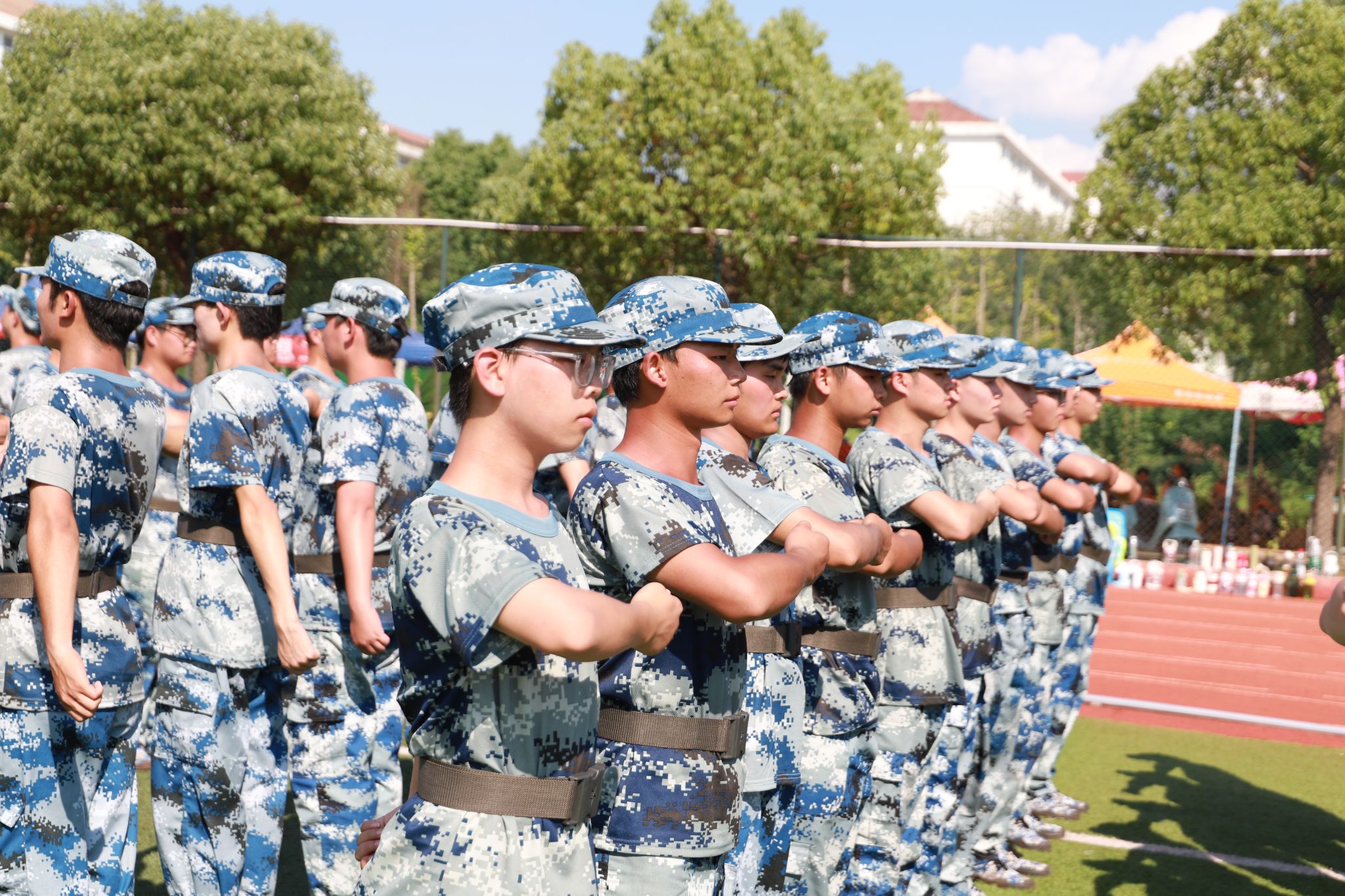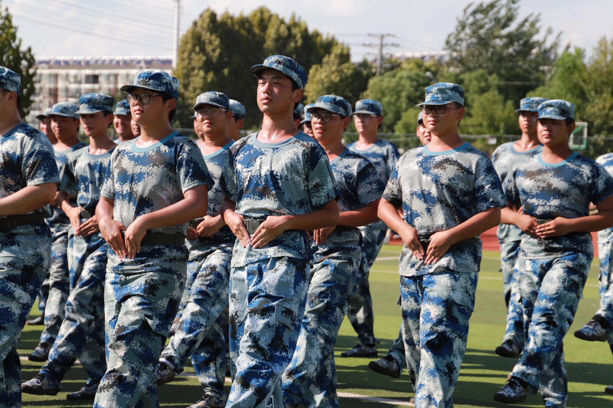 “稍息,立正,齐步走”伴随着教官响亮的口号,同学们在操场上列队,额头上的汗水和晒黑的皮肤,都是军训过程中留下的别样“勋章”,见证了他们不屈的信念与钢铁般的意志。