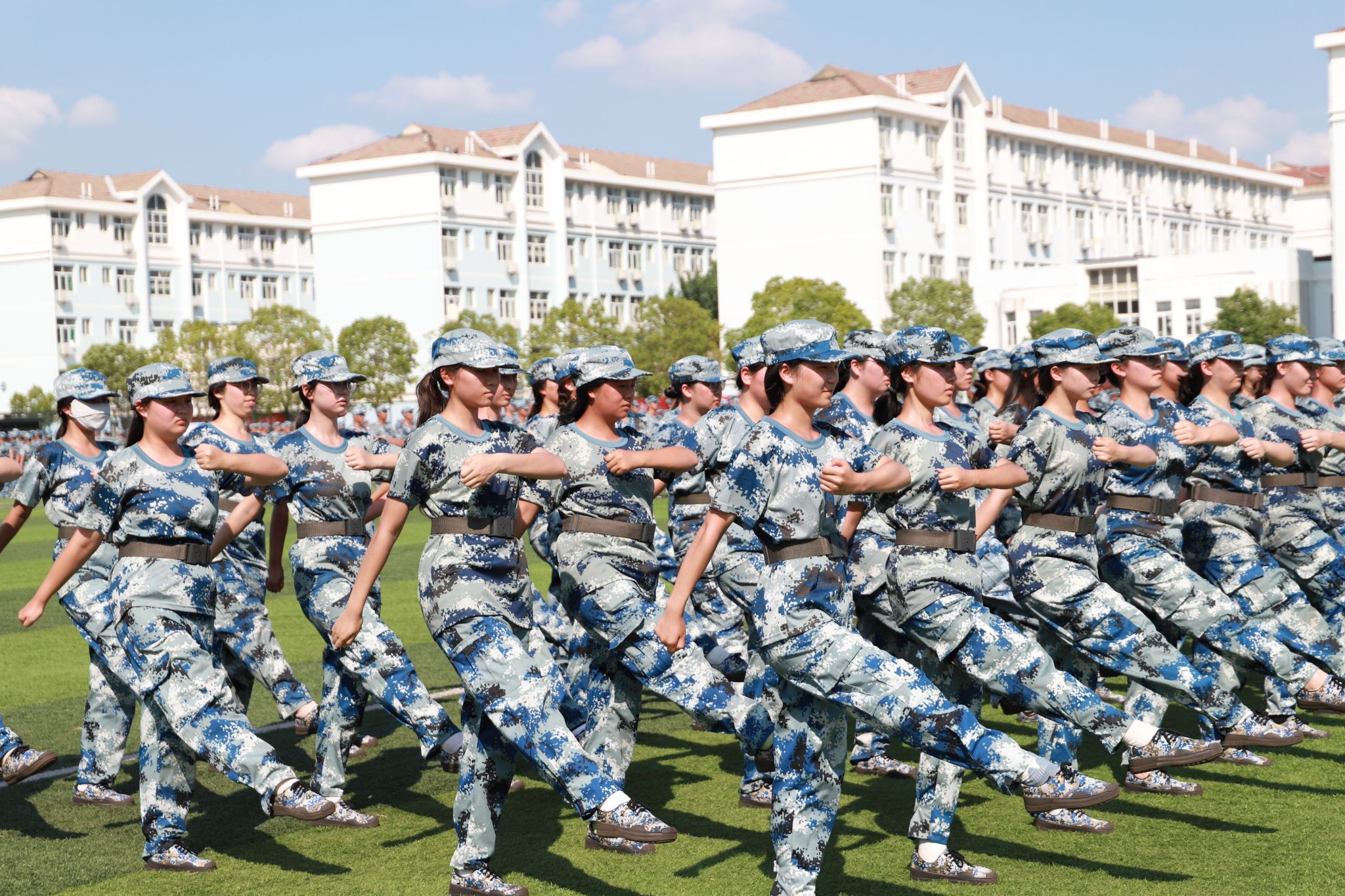 齐步走、正步走、跑步走,从一步一动到连贯动作,经历了千百遍的训练。他们落下的每一步,愈发坚定昂扬,展示着军人般的挺拔英姿与飒飒气质。