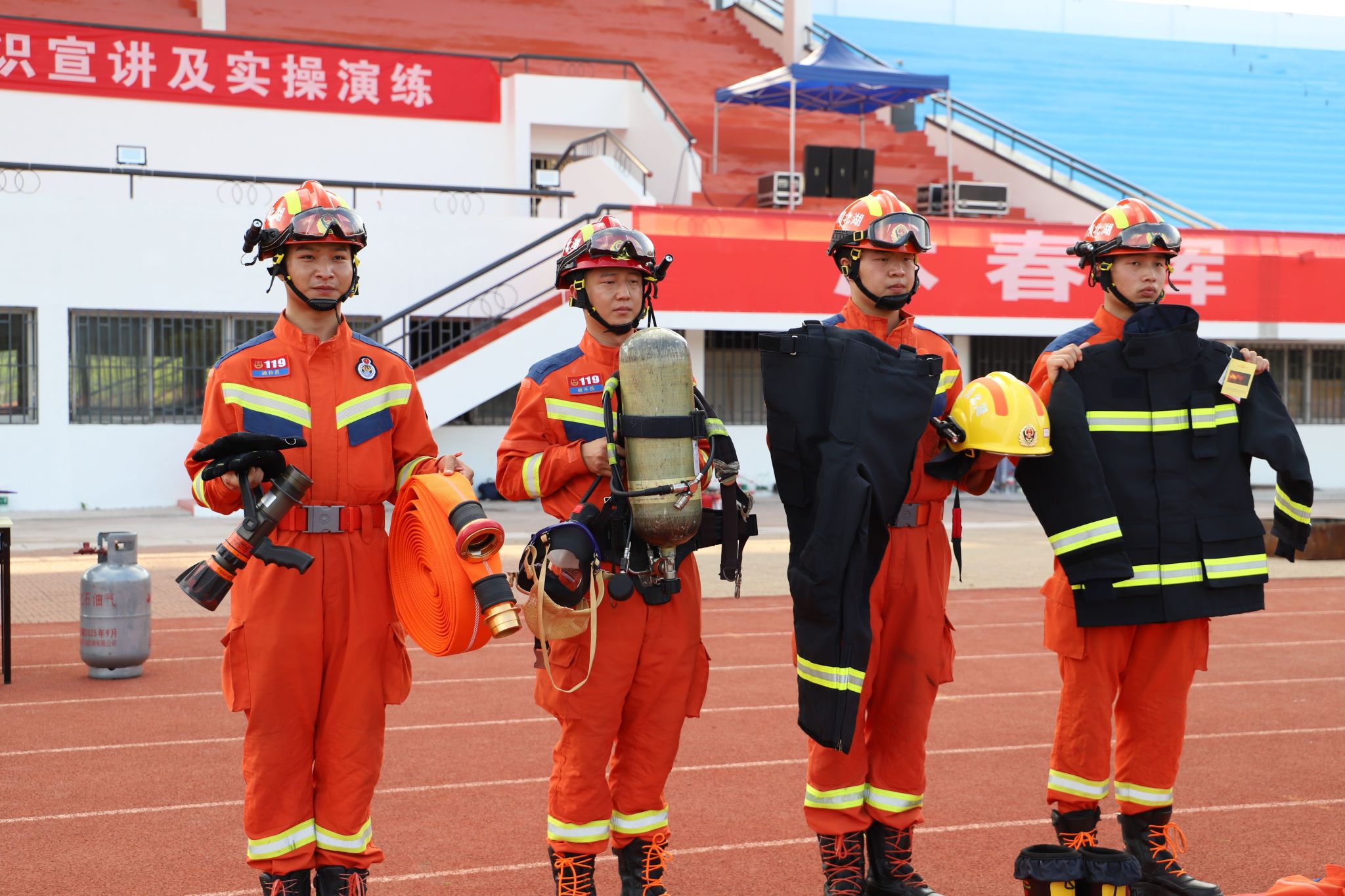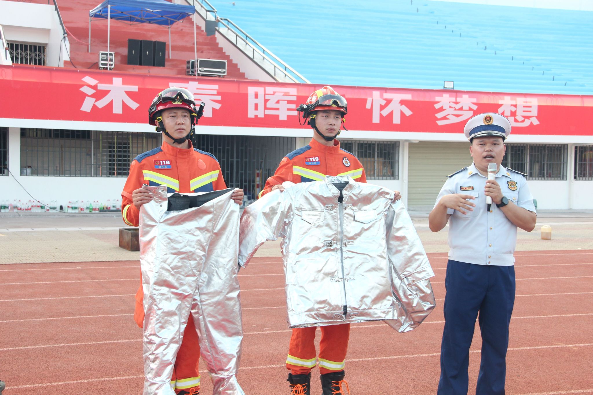 向大家展示了消防员在执行作战任务时穿着的服装和工具并讲述了其相应的功能用途。