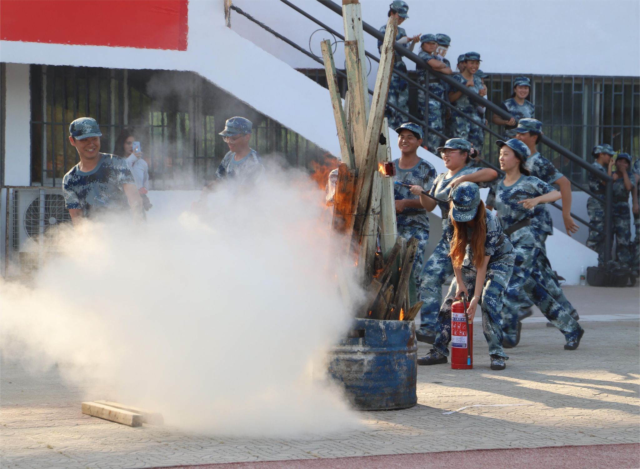 为了让同学们更好的掌握火场灭火技巧,消防员在现场模拟出一个小型发火点,并在介绍了干粉灭火器和消火栓的使用方法以及灭火时应采取的正确姿势之后,邀请了多名同学使用灭火器进行现场灭火。瞬间白雾四起,火势也逐渐变小直至熄灭。