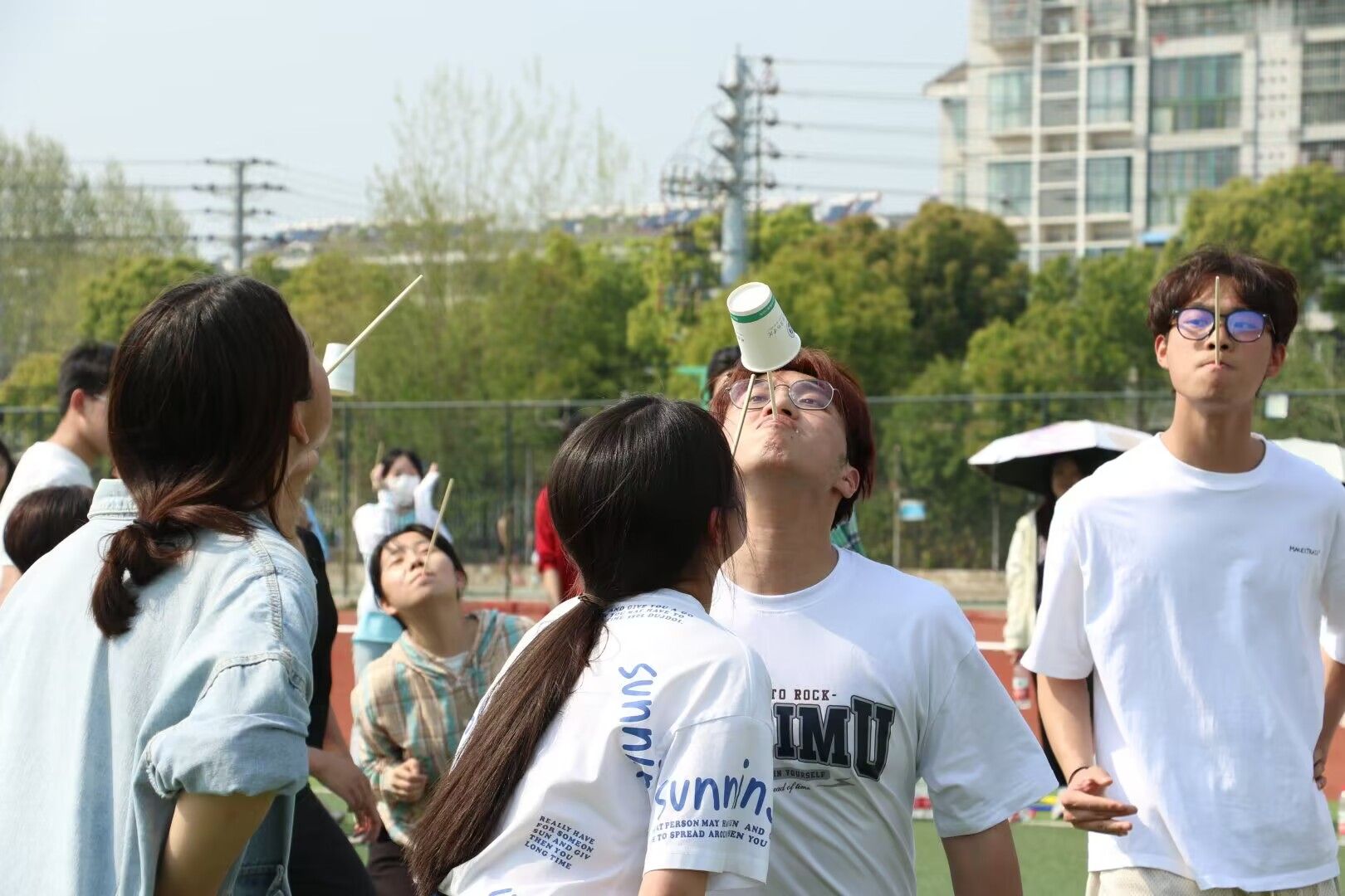 本次运动会共分为“珠行千里”、“智传呼啦圈”、“筷子传纸杯”、“心心相印”和“螃蟹赛跑”五个比赛项目。比赛过程中,同学们相互沟通,积极讨论战术,集思广益,通过简单的道具彼此配合去全心赢得比赛,现场氛围活泼愉悦。
