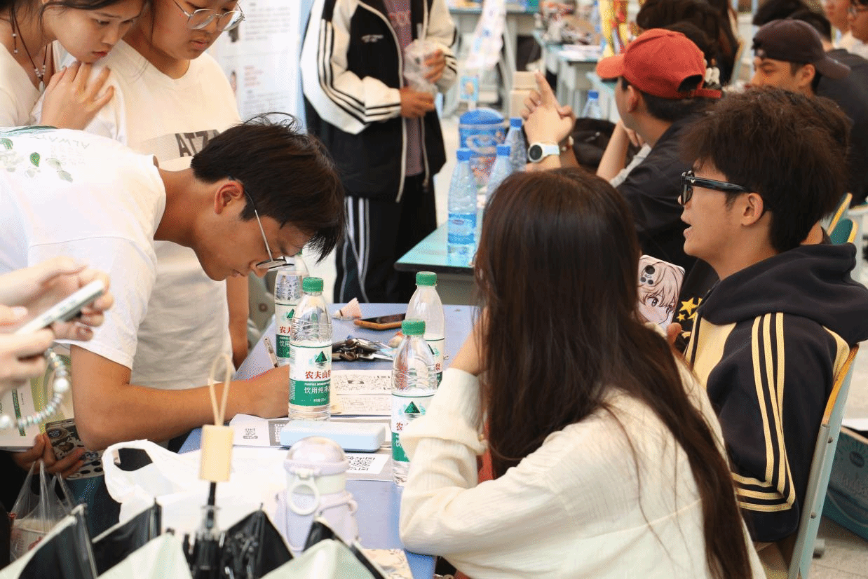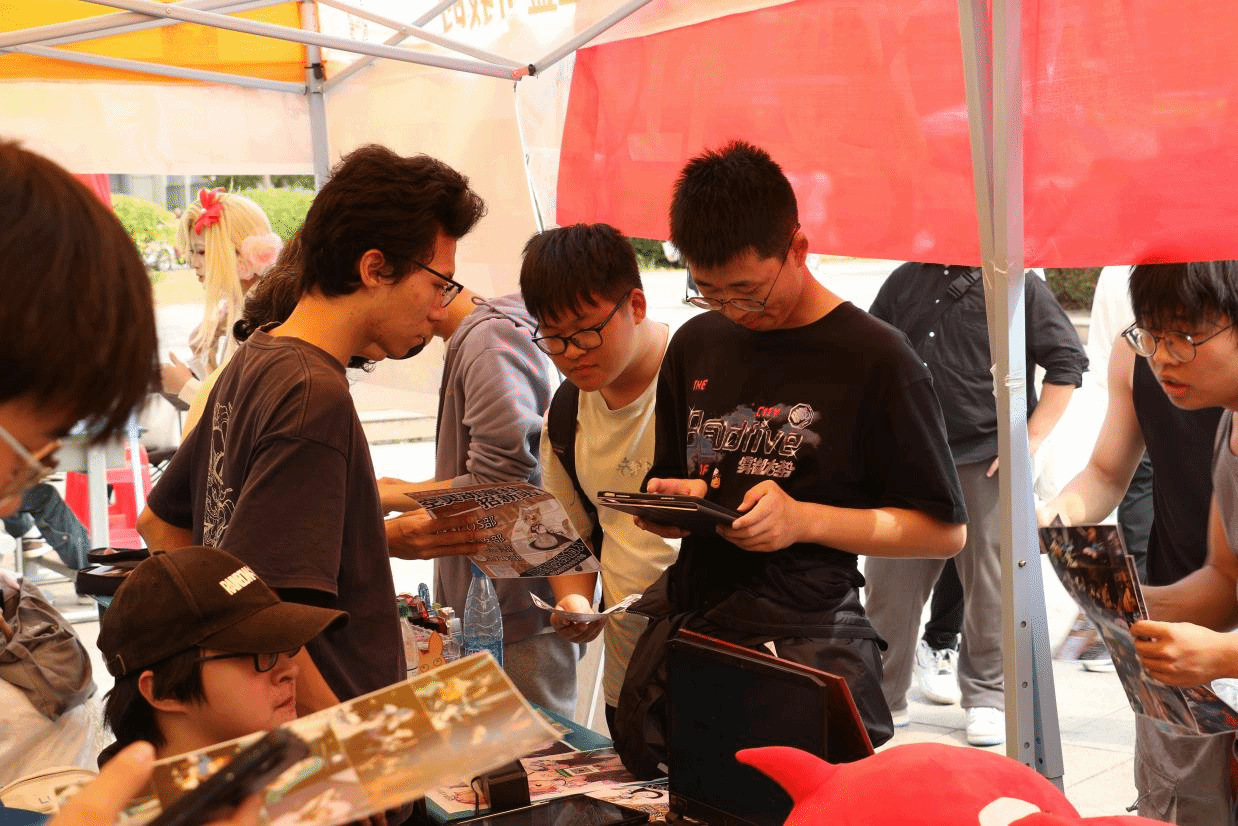 老员工艺术团随着音乐节奏轻盈起舞,激情四溢的表演即刻点燃现场氛围,吸引众多新生关注;七弦吉他社成员以各式乐器演绎动人旋律,吸引过往新生驻足聆听,体验音乐之美;爱羽羽毛球协会、创新电子技术协会等社团现场展示了他们的活动器材和自制模型……各具特色的社团遍布同大广场,将欢乐与笑声传递至每位同学心中,令人目不暇接。