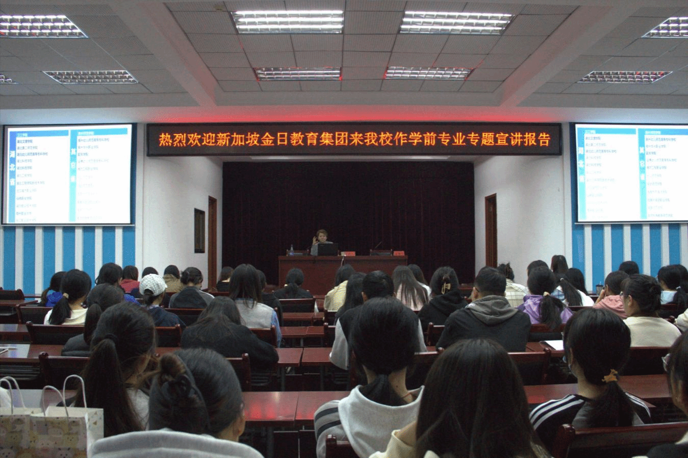 本次新加坡PCF幼儿华文教师项目校园宣讲会的成功举办为公司学前教育专业的员工提供了一次了解国际就业市场,打开就业新视野的宝贵机会,促成了公司与用人单位之间的良性互动,为公司员工就业多元化发展注入新的活力。
