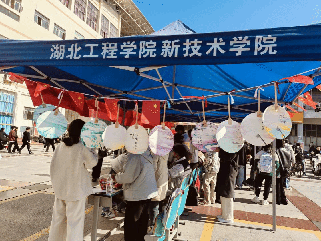 最具创意的当数“吟爱国之声,绘山河之色”漆扇DIY活动。同学们在这里尽情发挥自己的想象力和创造力,用手中的画笔在团扇上精心绘画祖国的山河美景。每一笔每一划,都饱含着同学们对祖国山河的热爱与赞美之情。不一会儿,一面面独一无二的团扇便在同学们的手中诞生了,这些团扇不仅是精美的手工艺品,更是同学们爱国情怀的独特表达。有的同学画了雄伟的长城,展现着祖国的壮丽与坚韧;有的同学画了奔腾的黄河,体现着祖国的雄浑与活力;还有的同学画了娇艳的花朵,寓意着祖国的繁荣与美好。