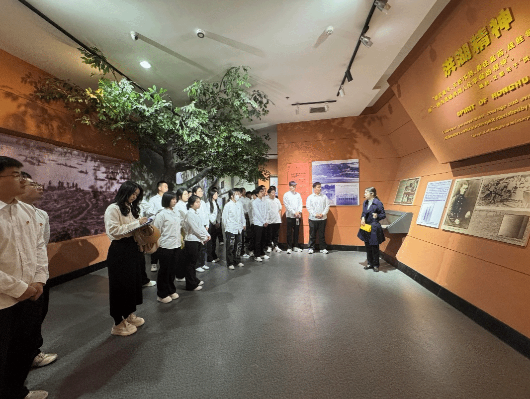 在庄严肃穆的纪念园内,全体成员首先参观了湘鄂西苏区革命历史馆。通过珍贵的历史文物、图片和文献资料,同学们深入了解了以贺龙、周逸群、段德昌等为代表的革命先辈在洪湖地区领导土地革命、创建湘鄂西革命根据地的光辉历程,深刻感悟到中国共产党人艰苦卓绝的斗争精神和坚定不移的革命信念。