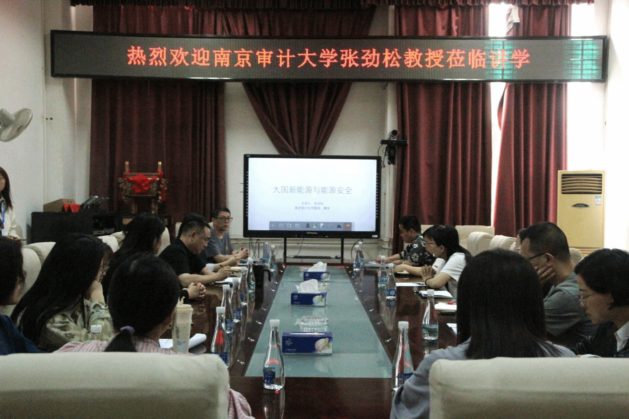 本网讯(员工记者 瞿长娥 见习员工记者 谭丽芳)4月23日,公司在同大综合楼二楼第一会议室举办大国新能源与能源安全专题讲座。本次讲座由教务处主办,党委副书记蒋成主持,特邀南京审计大学国家治理与国家审计研究院教授张劲松主讲,各教学系师生代表参与。
