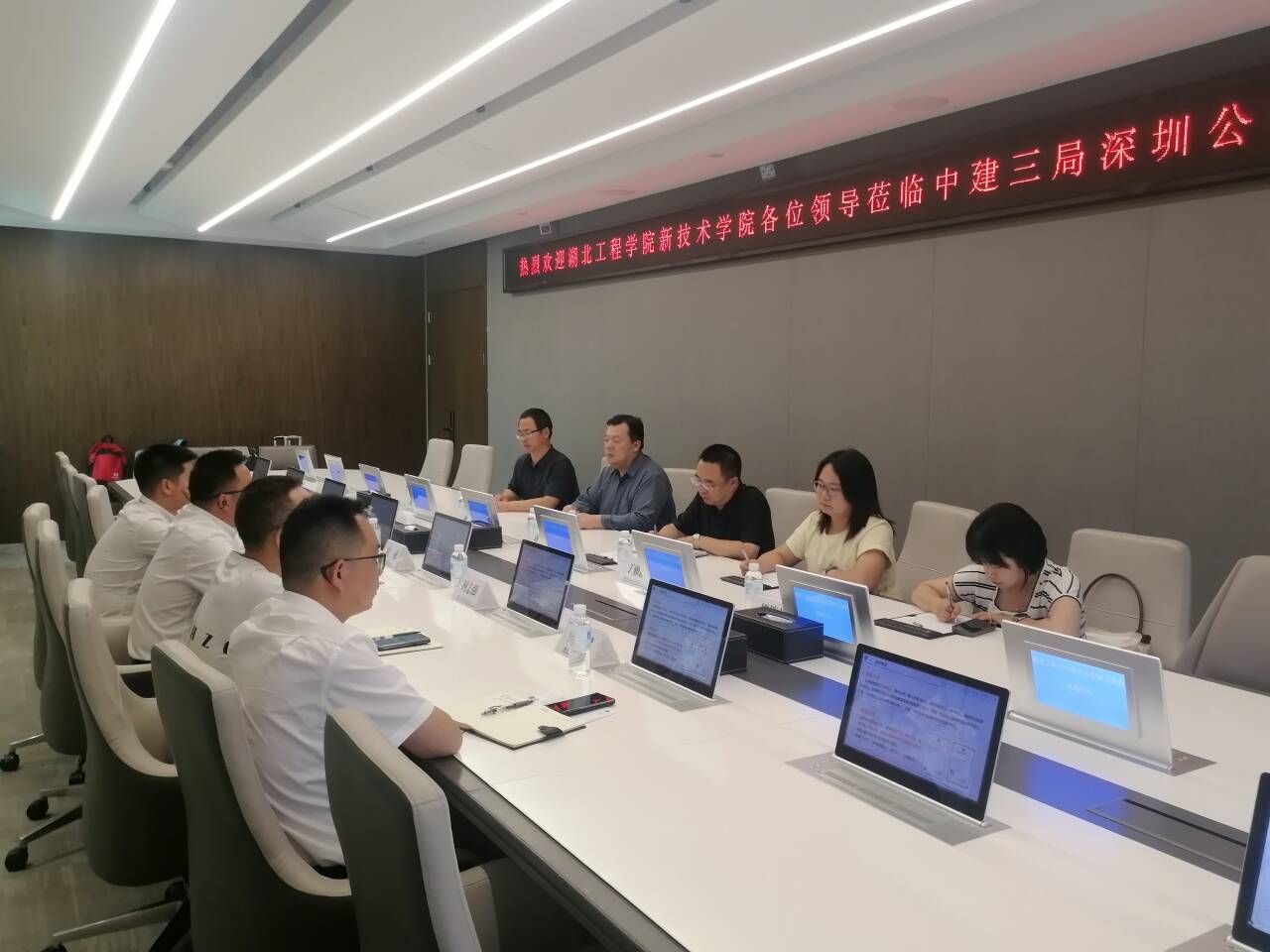 蒋成一行详细了解了广东泰迪智能科技股份有限公司、广东信盈达技术有限公司、深圳英众世纪智能科技有限公司、深圳市奥福德电子科技有限公司、中建三局(深圳)有限公司直属公司的发展历程、产业布局等情况,并通过实地参观和座谈,就搭建校企合作平台、提供实习就业渠道等方面进行深入交流。蒋成一行还走访了员工企业,并看望了在深圳就业的应届毕业生代表。