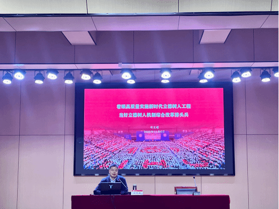 教育部高校思想政治工作创新发展中心(武汉大学)副主任司文超以《着眼高质量实施新时代立德树人工程》为题作专题报告。他强调,要深入理解新时代育人理念,树立系统观念和集成思维,强化思政引领力,扎实推进立德树人机制改革。