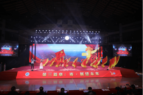 诗朗诵《扶桑初日升》,彰显着新院学子如同初升的扶桑花,风华正茂,生机蓬勃,迸发着明德明志,求是求新的精神品格;《党旗飘扬的方向》,伴舞一袭鲜红的衣裙,壮阔嘹亮的歌声,富有力量的歌词,是我们血脉里永不褪色的赤诚,这无不令观众感到生于华夏,我们何其有幸。