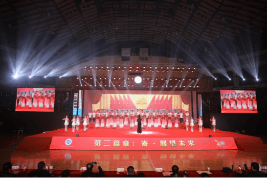 《我和我的祖国》和校歌《彩绘明天》两首合唱,一次国与校的相遇,一次动情忘我的歌唱,坚定着公司“为党育人、为国育才”的初心和使命。全场师生齐声高唱,汇成祝福的海洋,祝福公司在新的起点扬鞭奋进,再创新的辉煌。本次办学20周年文艺晚会到此圆满结束。