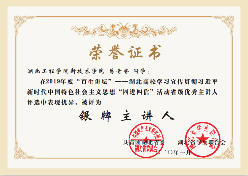 ——记2019年度湖北高校“百生讲坛”银牌主讲人葛青香同学