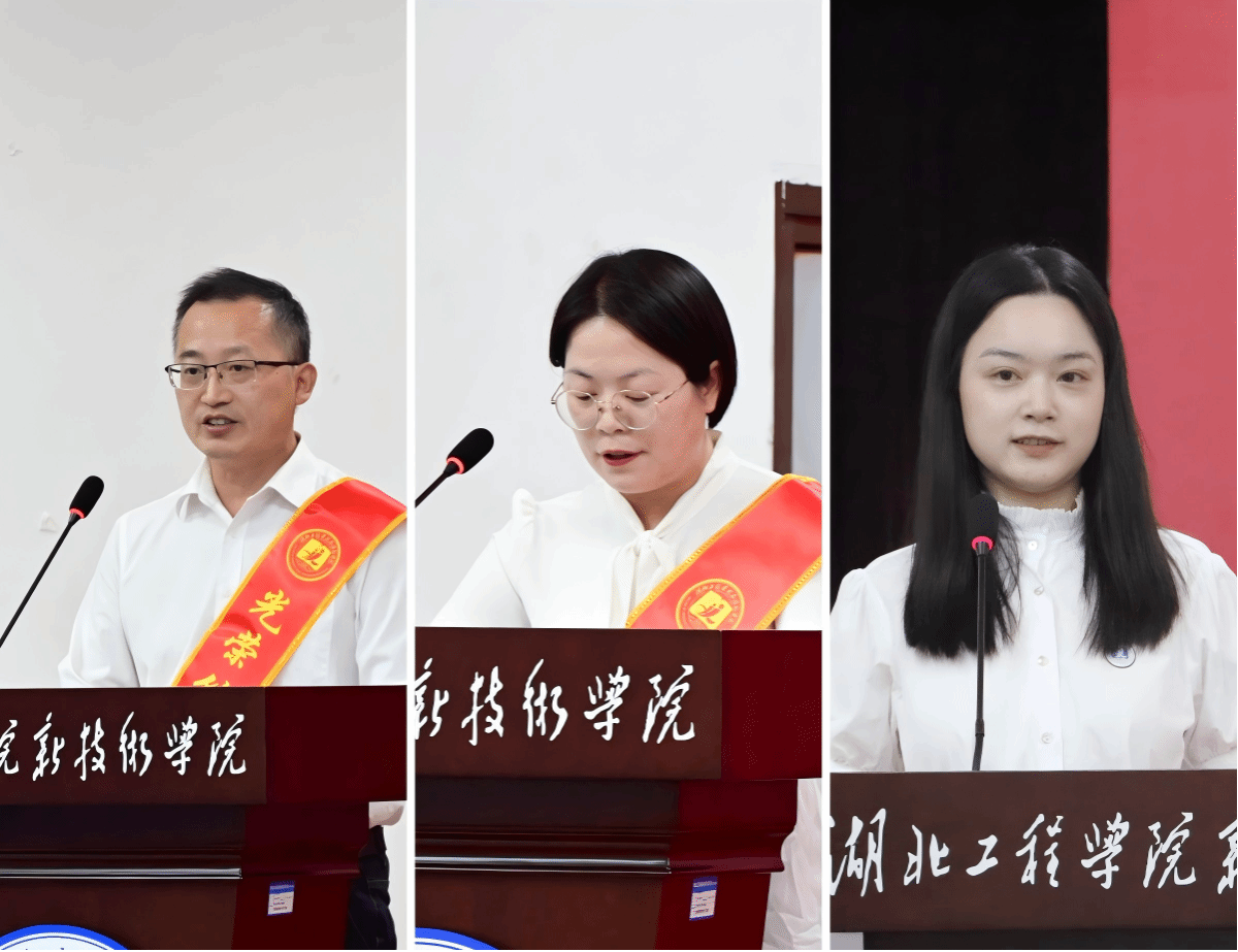 语言文学系解晨老师作为新入职教师代表发言。财经政法系张忠老师作为“从教15年”教师代表发言。信息工程系丁洁老师作为第一届“师德先进个人”教师代表发言。