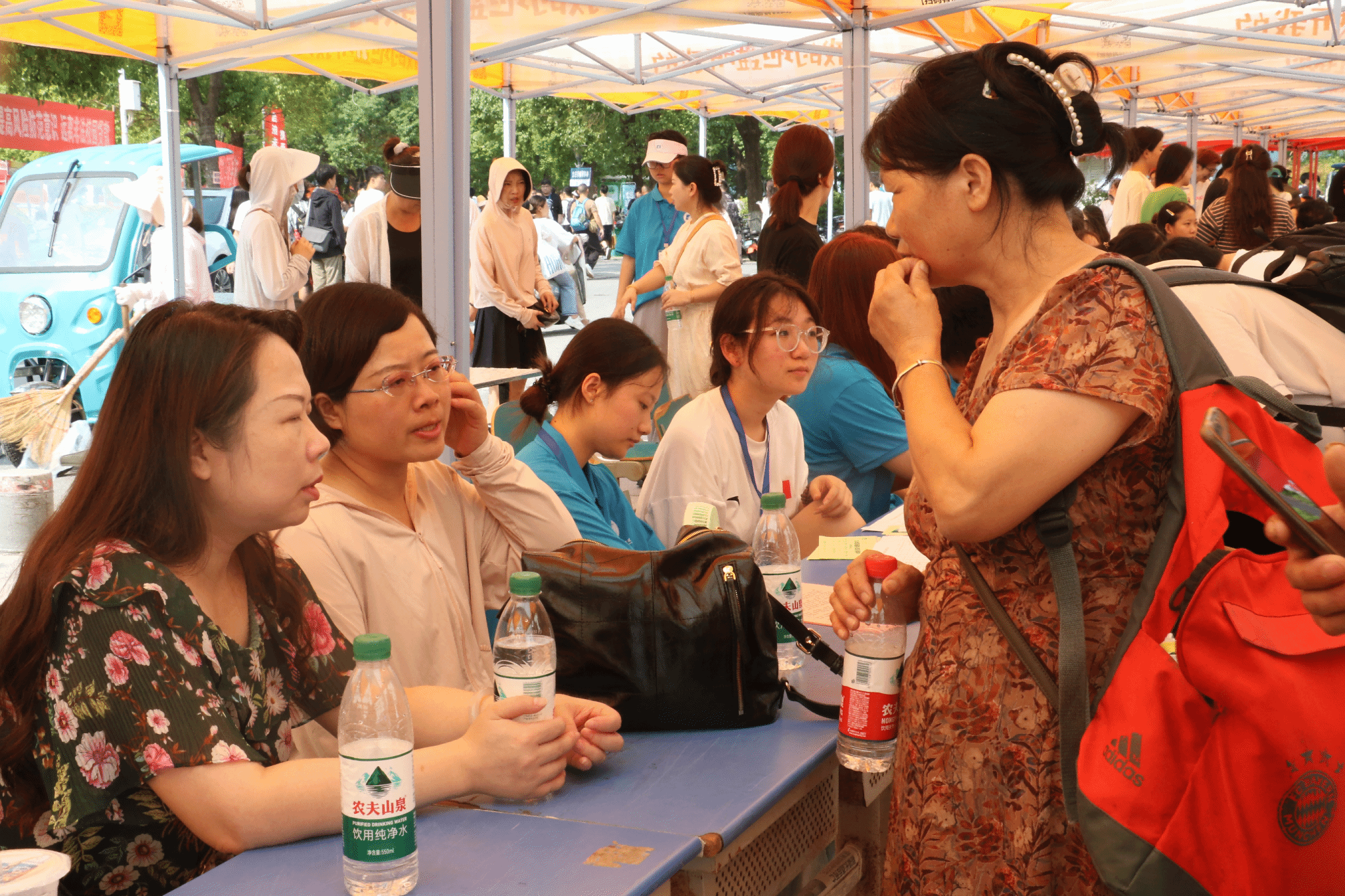 校园内,绿树成荫,横幅标语暖人心,每一处都充满知识的气息和青春的活力。员工和家长们在老师和志愿者的引导下,有序地参观各个角落,了解公司的新宿舍、新修的教室和整洁明亮的食堂。
