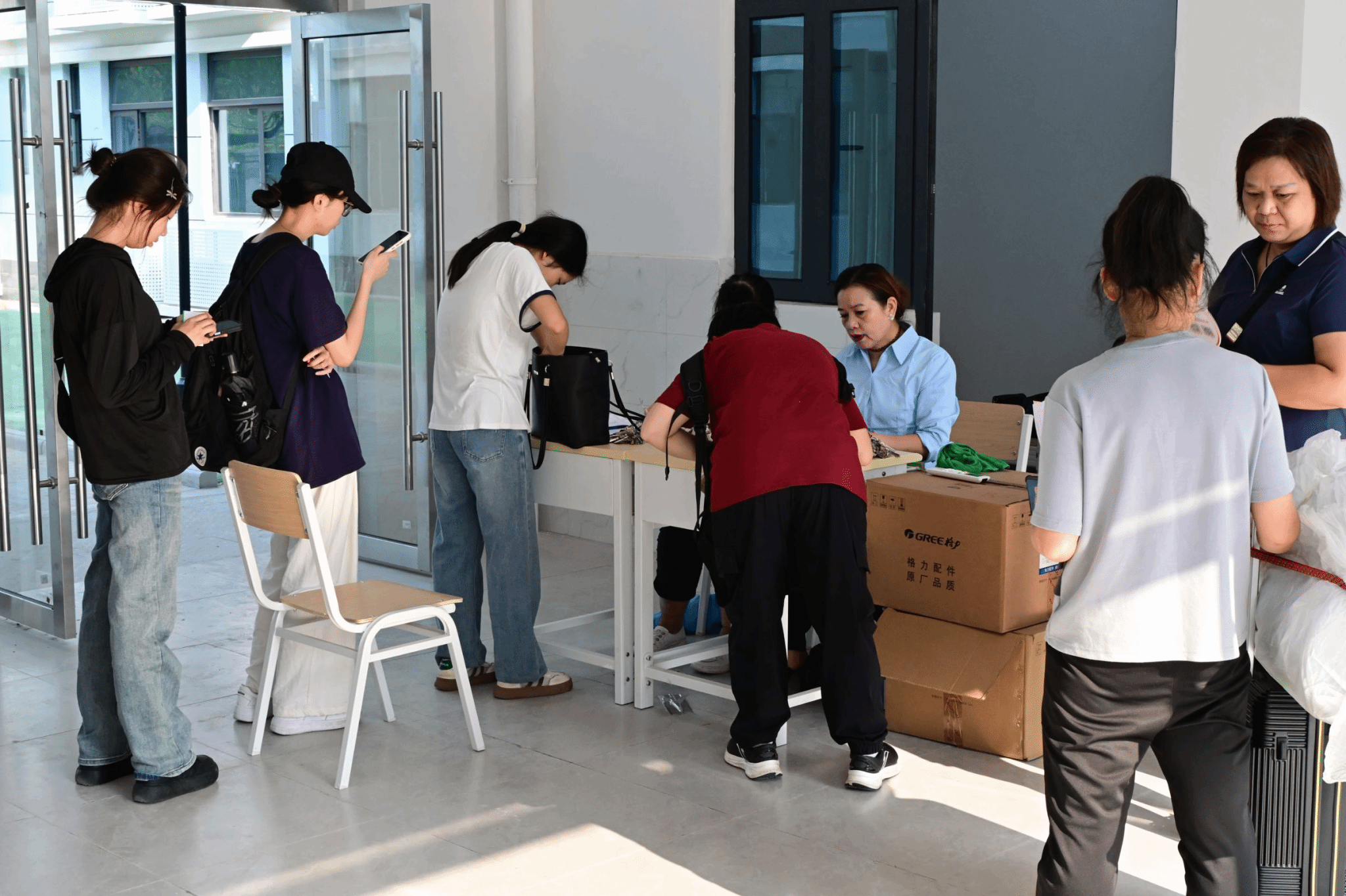 迎新第一天晚上,一半以上的员工已经完成登记并顺利入住。当天晚上,党委书记欧阳莎莉前往同大公寓新宿舍看望新生,与同学们“拉家常”“聊近况”,关心新生入住的情况。