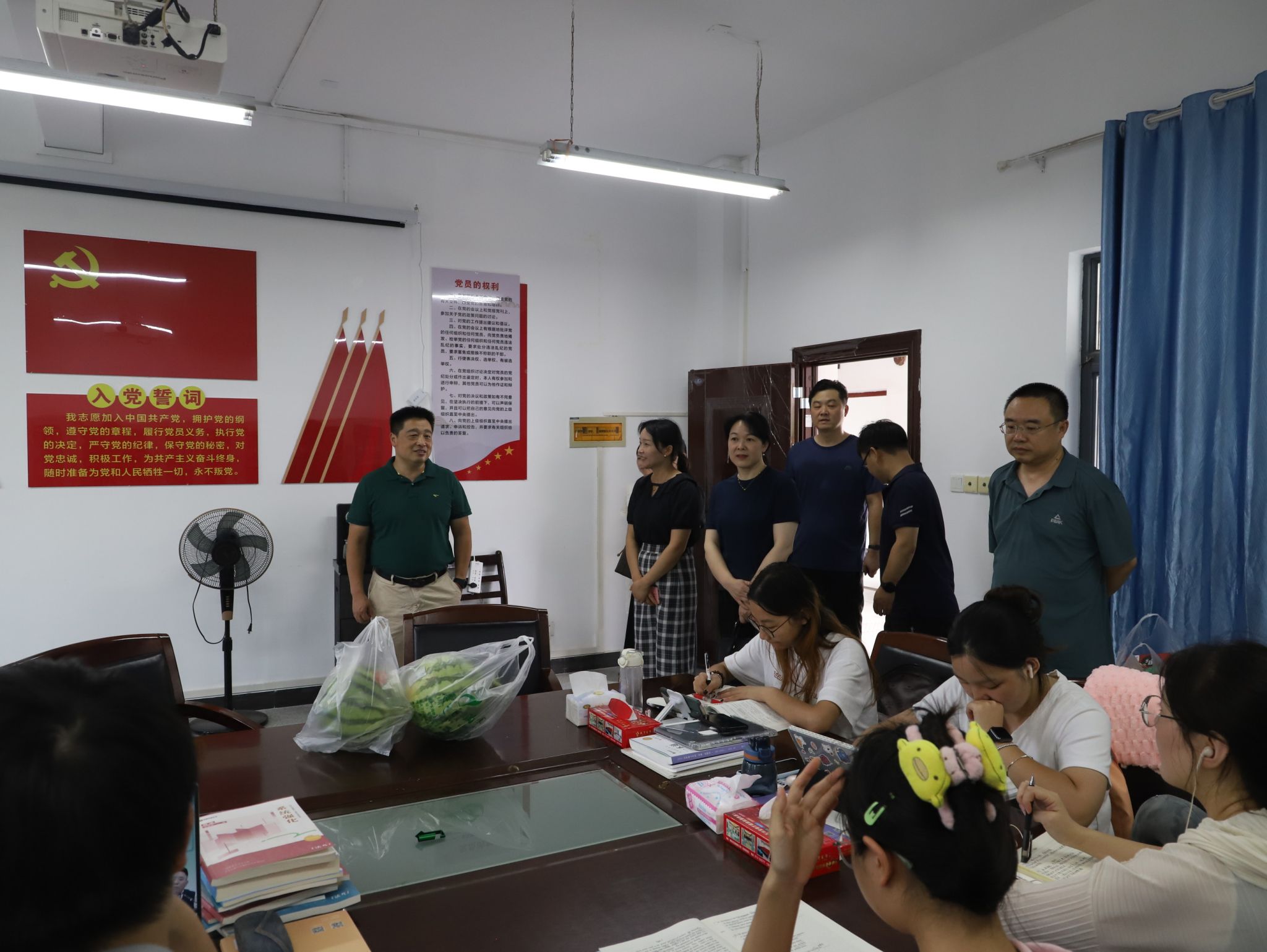本网讯 正值暑期,盛夏时分,烈日炎炎。7月18日下午,经理张辉、党委书记欧阳莎莉、副经理蒋成,满怀对暑期留校员工的关心关爱,带领员工工作部、党务工作部等相关职能部门负责人,前往各教学系自习室和实验中心等场所,看望慰问暑期留校复习考研、考公、参加竞赛的员工,了解留校员工学习生活情况,并发放慰问物资。