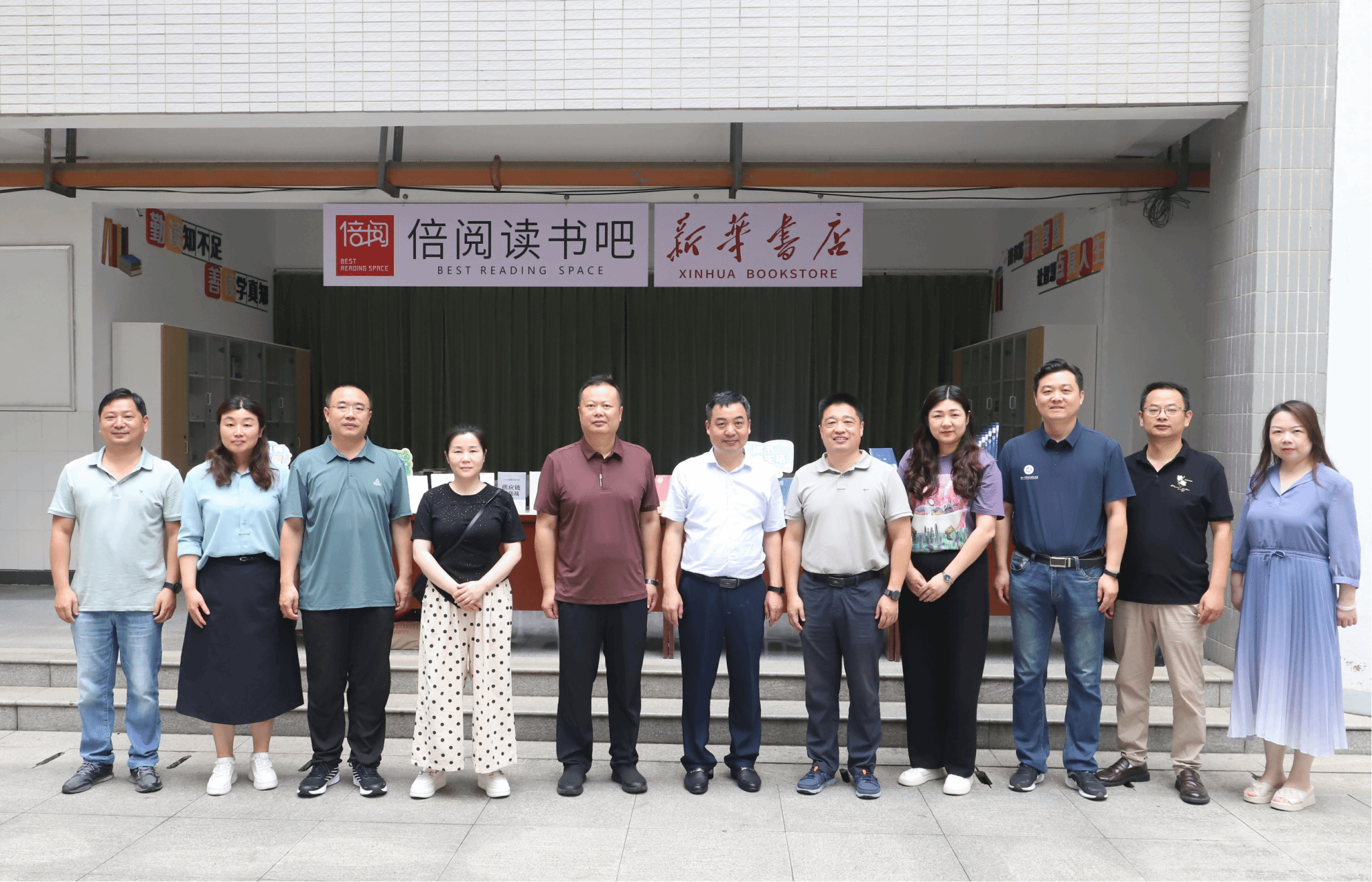 本网讯 6月24日上午,公司与新华书店集团孝感市分公司共建图书角座谈会及揭牌仪式在科技楼举行。新华书店集团孝感市分公司总经理郑汉桥,经理谭红梅、操梅,公司经理张辉,副经理陈友华、蒋成,教务处主要负责人,语言文学系主要负责人参加活动。