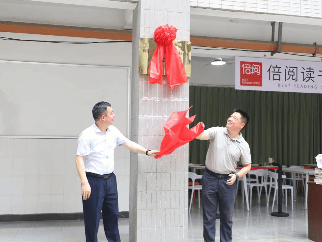 会后,张辉经理和郑汉桥经理一起为图书角揭牌。
