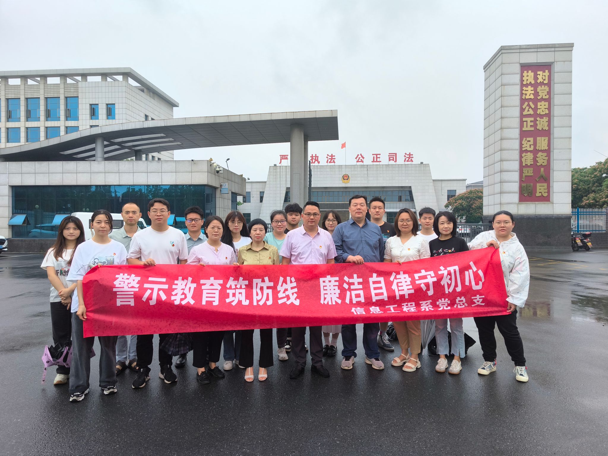 本网讯 为加强师生党员的廉政教育和法治观念,提升党性修养,5月30日上午,信息工程系党总支组织18名师生党员代表赴孝感监狱开展“警示教育筑防线、廉洁自律守初心”主题警示教育活动。活动通过实地参观和现场教学,使师生党员深刻认识到违纪违法行为的危害,自觉树立起拒腐防变的思想意识。