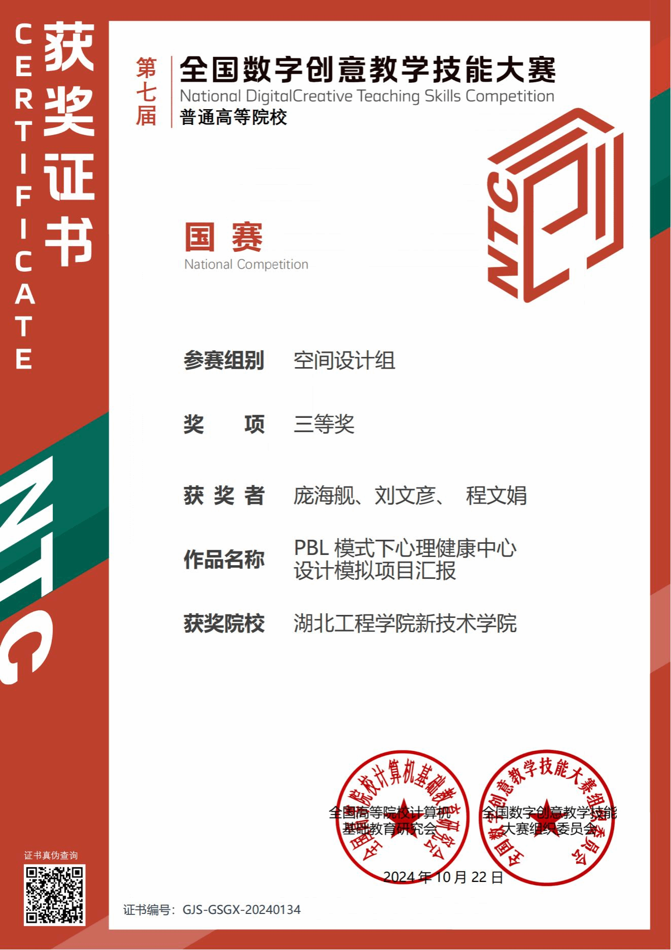 本网讯 11月16日—17日,2024年“全国数字创意教学技能大赛”(NCDCTS)全国总决赛圆满结束。公司语言文学系庞海舰老师团队的《PBL模式下心理健康中心设计模拟项目汇报》课程,获空间设计组2024年“全国数字创意教学技能大赛全国总决赛三等奖”。