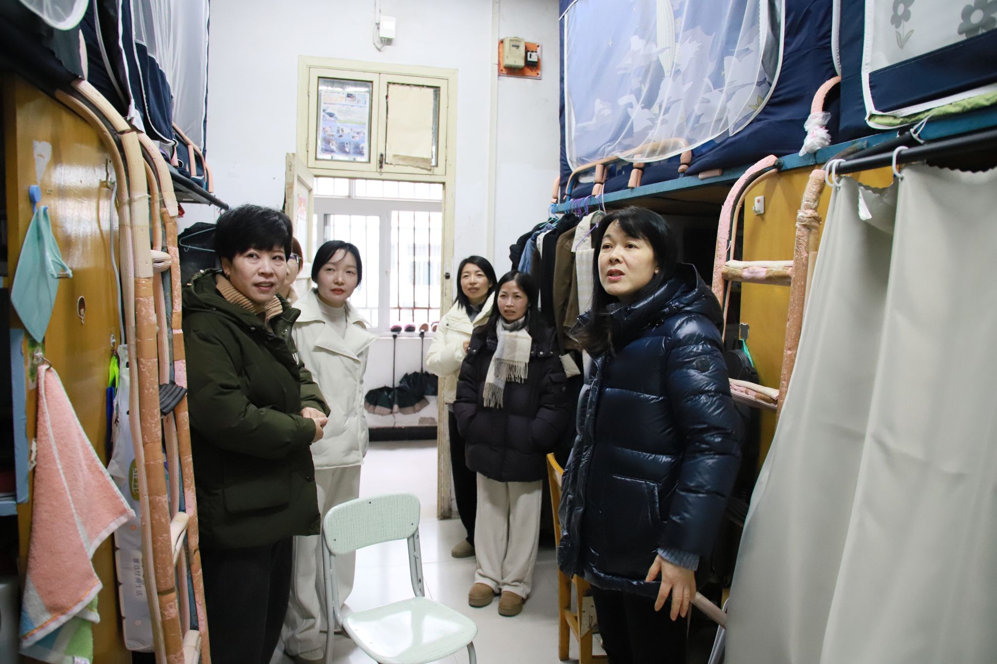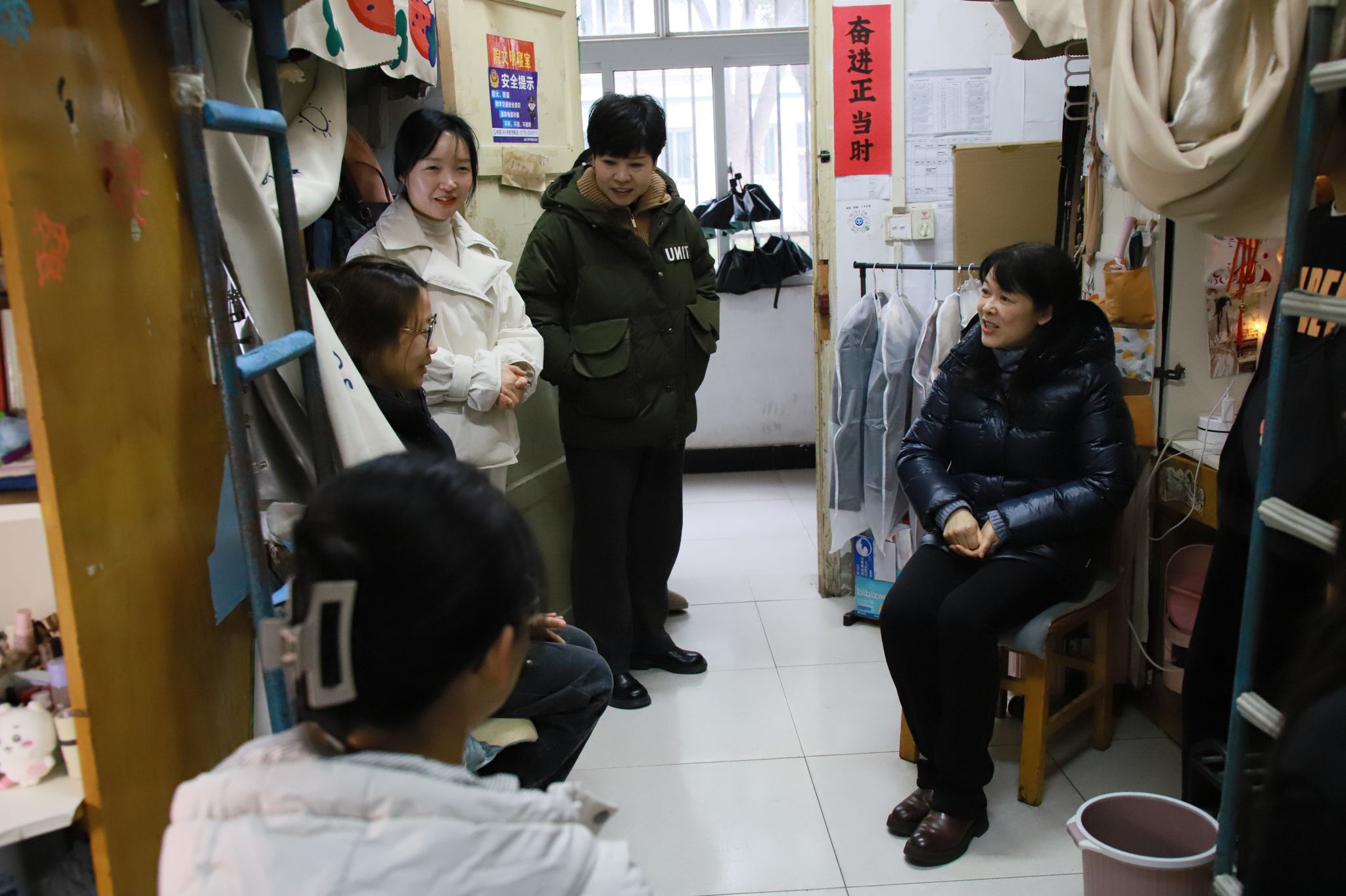 党委书记欧阳莎莉深入财经政法系员工寝室,进行寒假前安全教育。每到一处,书记都与同学们亲切交谈,详细询问她们的学习生活情况、假期安排以及返乡行程。她指出,务必高度重视假期前的安全工作,并提醒同学们离校前要关闭电器设备、拔掉电源插头,检查宿舍门窗是否关闭,严禁在宿舍使用违规电器,防止火灾事故发生;要求同学们合理规划返乡行程,遵守交通规则,确保出行安全。看到同学们宿舍环境整洁、温馨有序,书记表示欣慰,并叮嘱大家要继续保持良好的生活习惯,营造文明和谐的宿舍氛围。