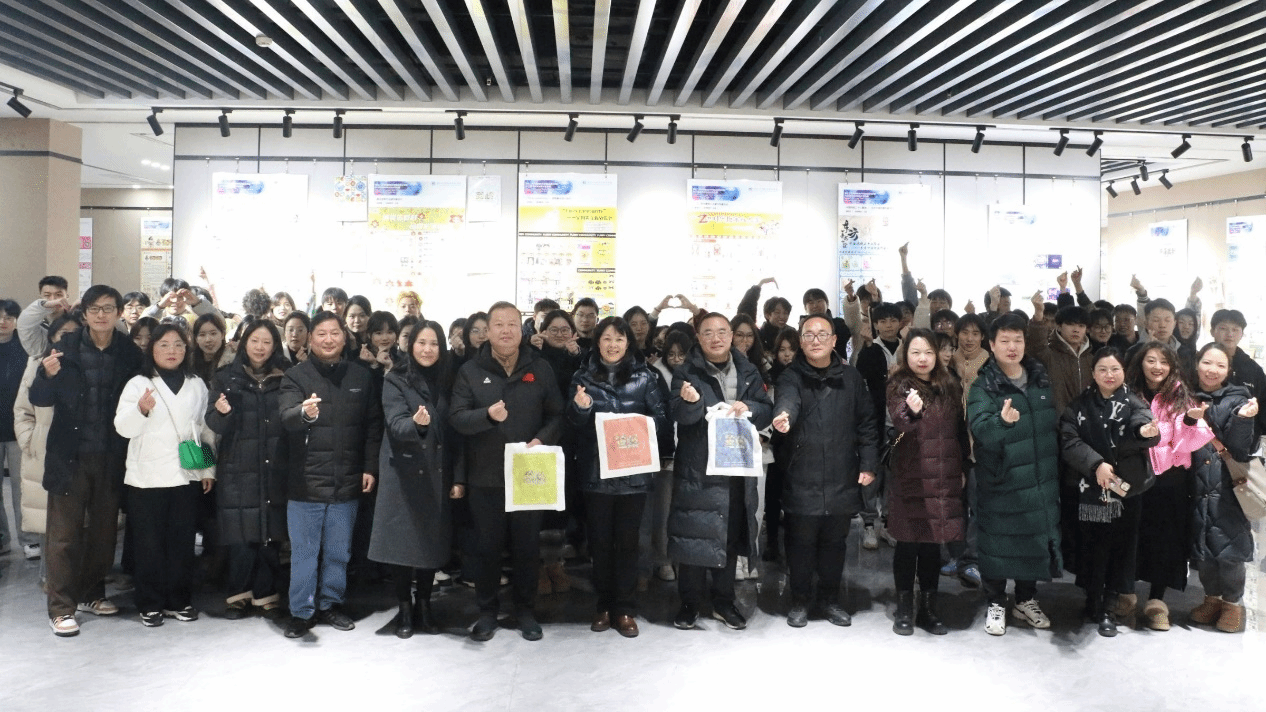 最后,校领导与参加毕业设计展的师生们共同合影留念,为本次毕业设计展画上了一个圆满的句号。本次展览不仅充分展现了语言文学系2025届视觉传达设计与环境设计专业员工的设计水平与实践能力,也进一步体现了公司在艺术类教育方面的坚实基础及对员工能力培养的显著成效。