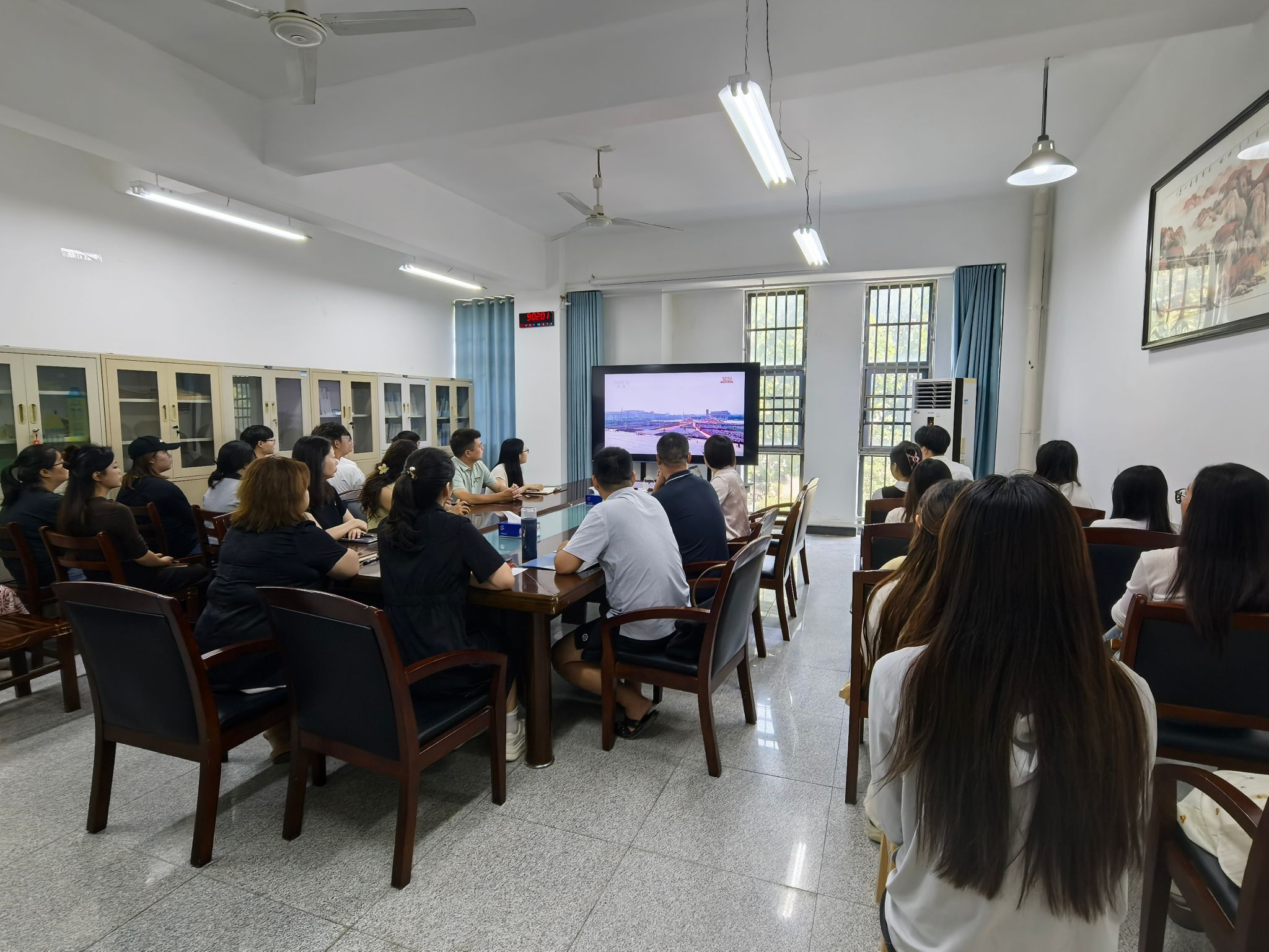 人文传播系师生代表收看直播