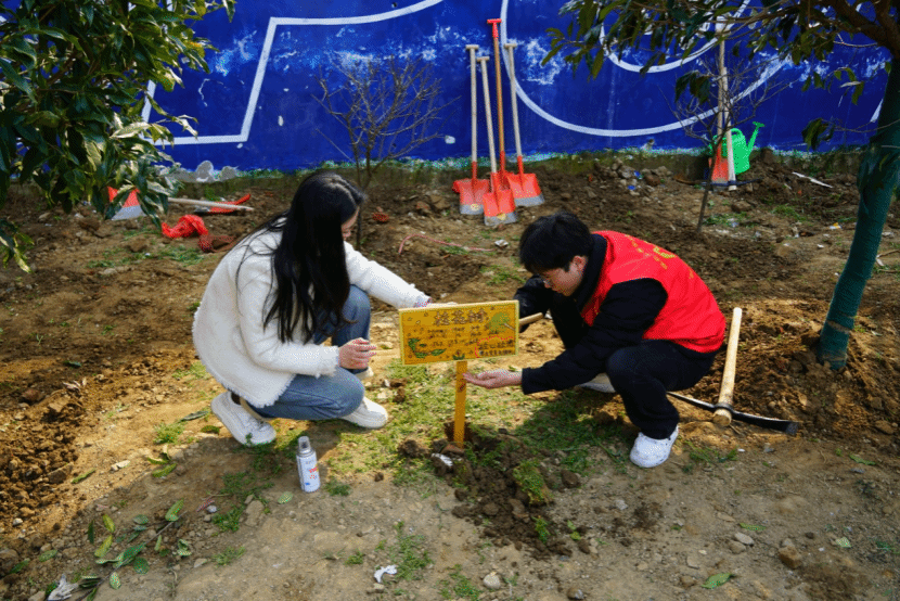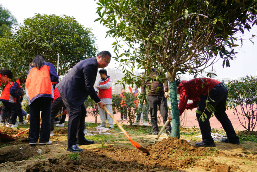 揭牌仪式后,学雷锋月志愿服务植树活动正式开启。城市设计系与永新中学员工结对分组,在老师指导下有序植树,大家分工协作、干劲十足。两校学子在劳动中传递温暖、践行绿色理念,让雷锋精神在实践中落地生根。